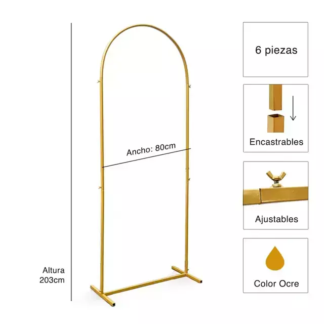 - Modelo: Arco Simple- Medidas: 2,03m x 80cm- Estructura: 6 piezas encastrables